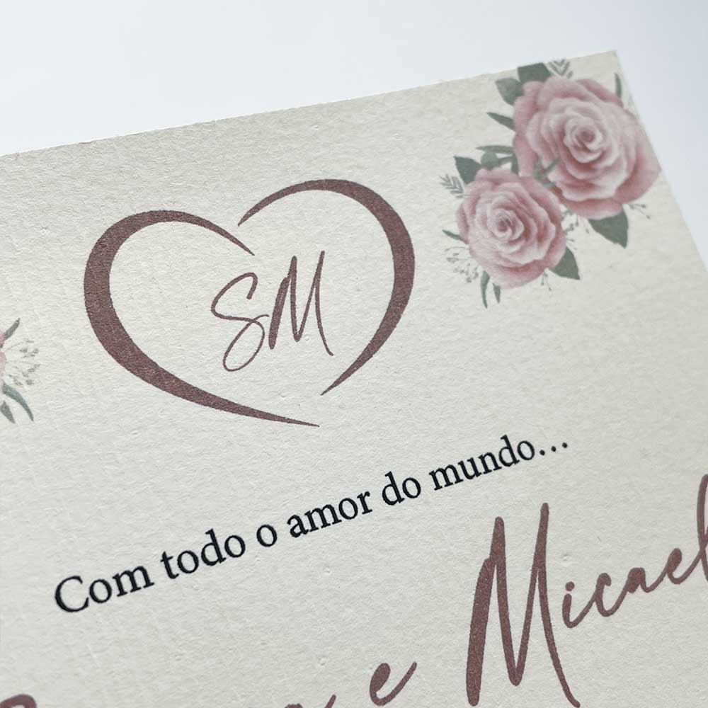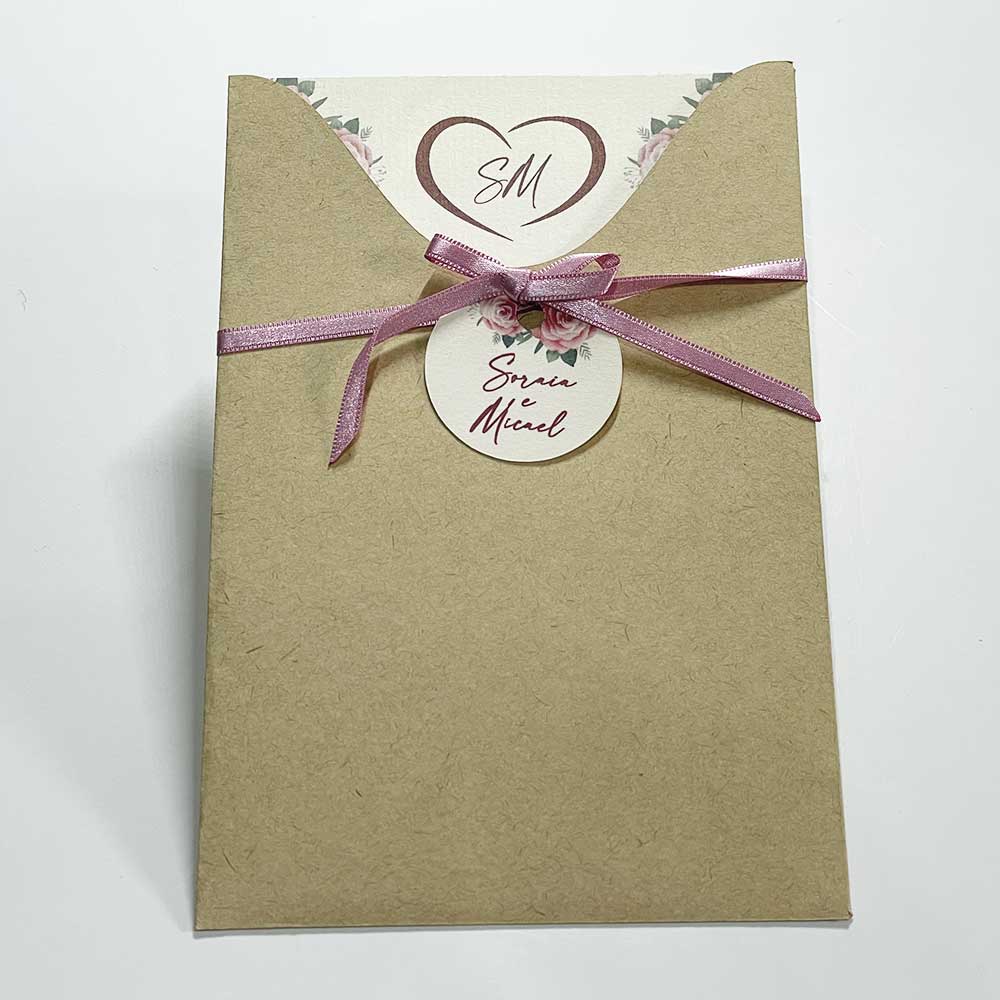 Apresentamos o nosso exclusivo convite de casamento que combina o charme rústico do papel kraft com a delicadeza sofisticada do papel vergé creme. Esta peça única reflete a harmonia entre a simplicidade e a elegância, perfeita para casais que buscam um design atemporal e encantador.